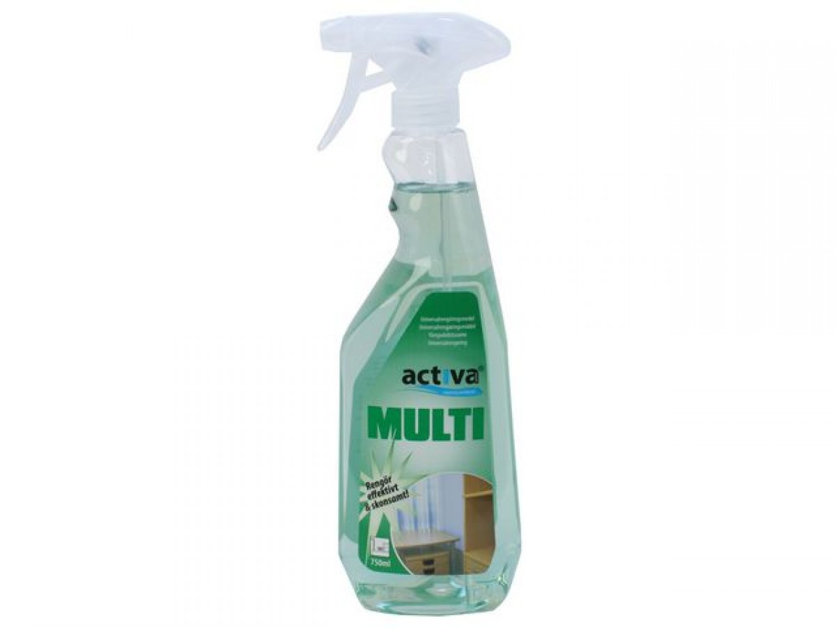Activa Multi är ett universalrengöringsmedel för alla ytor som tål vatten. Effektiv rengöring som snabbt och lätt tar bort alla typer av smuts och fläckar som t.ex. fingeravtryck, nikotin och fett. Lämnar inga rester på ytan.